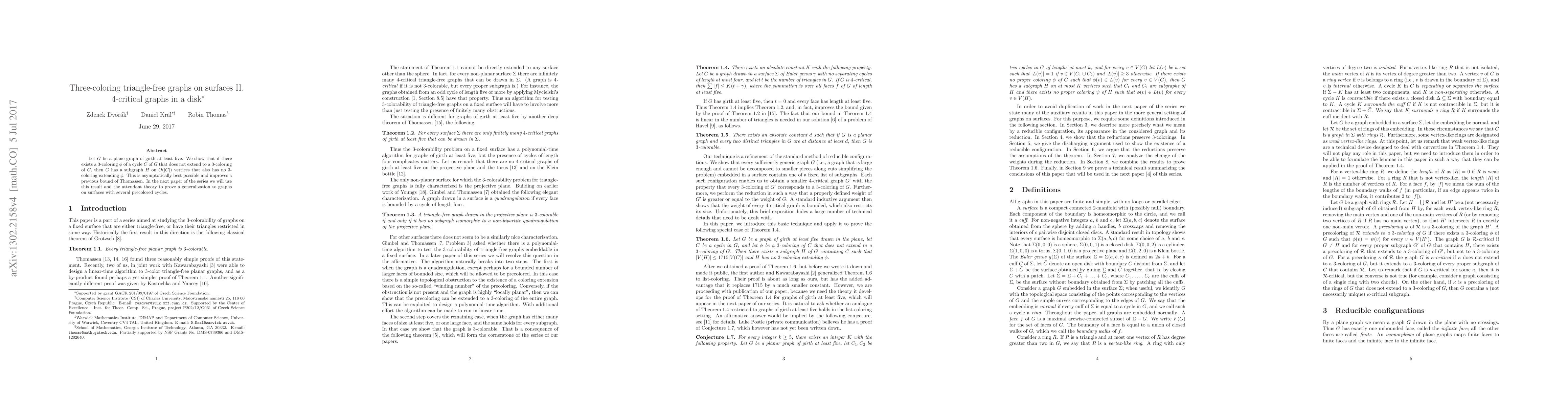 Summary: The paper demonstrates that a plane graph with girth at least five, which cannot be 3-colored extending a given coloring of a cycle, contains a subgraph with no such extension, improving previous bounds. This result will be pivotal in extending 3-coloring theory to triangle-free graphs on surfaces in subsequent work.