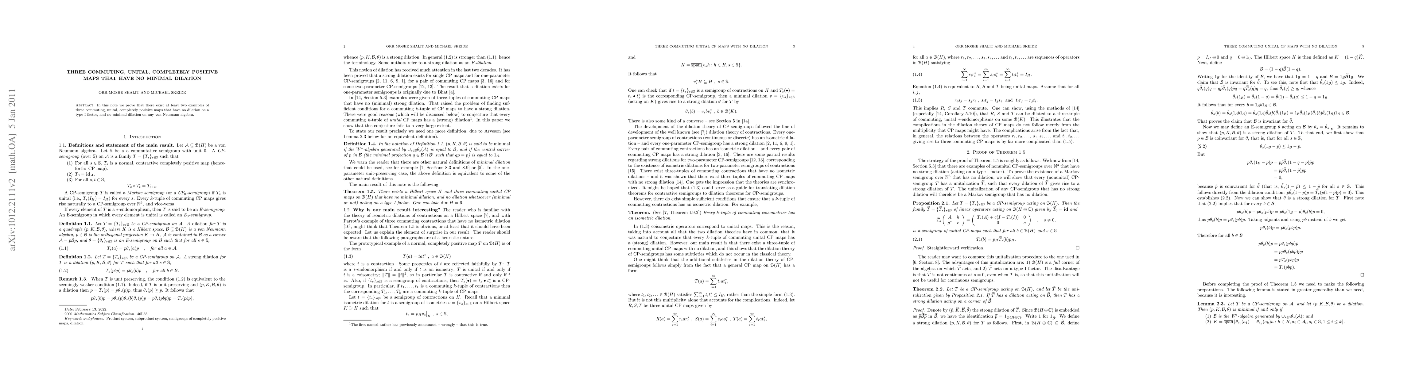 Summary: This paper demonstrates the existence of three commuting, unital, completely positive maps that lack any dilation on a type I factor and no minimal dilation on any von Neumann algebra, providing two specific examples.