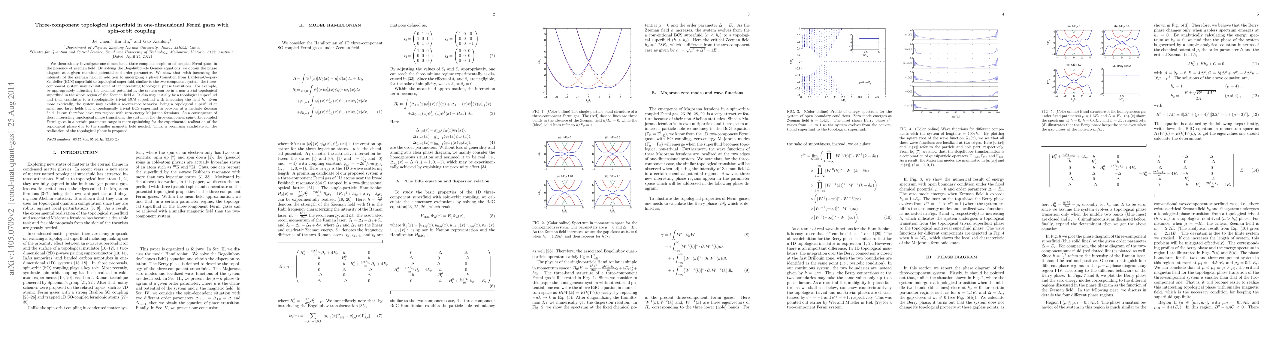 This paper explores a one-dimensional three-component Fermi gas with spin-orbit coupling and a Zeeman field, revealing a phase transition from BCS superfluid to a topological superfluid. The study shows that such systems can sustain nontrivial topological phases with two Majorana zero energy regions, making them promising candidates for experimental realization due to lower magnetic field requirements.