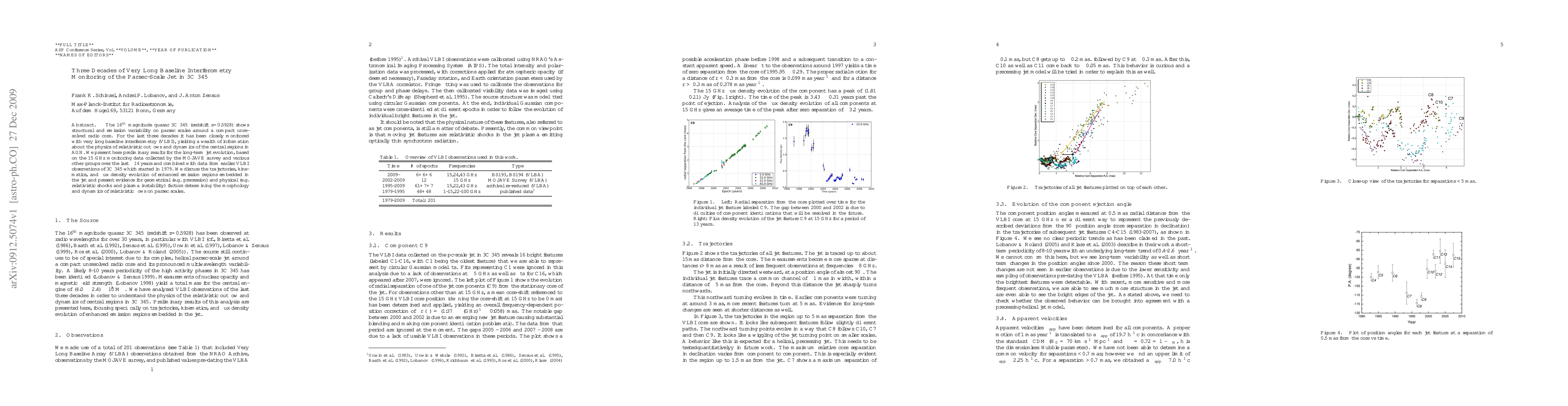 This paper summarizes three decades of VLBI observations of the quasar 3C 345, revealing the long-term evolution of its parsec-scale jet, including its kinematic and flux density changes, and identifying factors like precession and relativistic shocks influencing its morphology and dynamics.