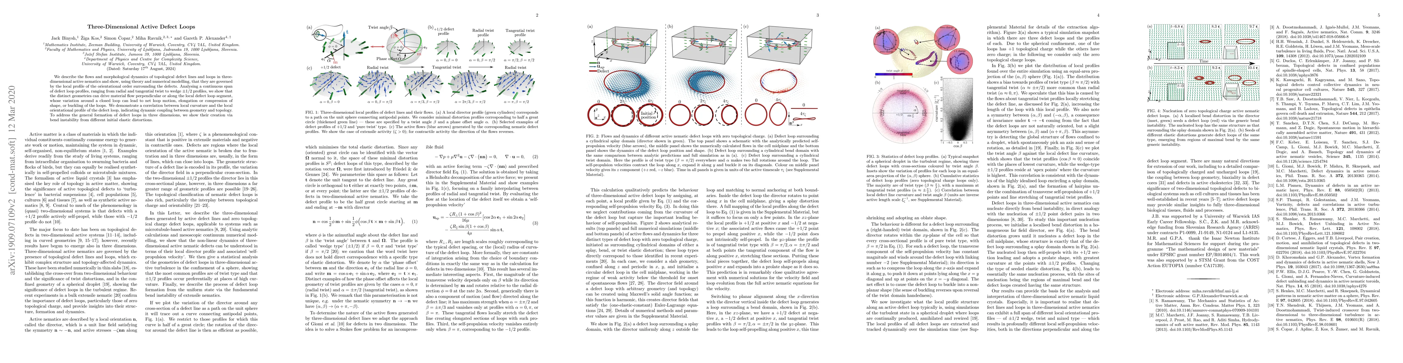 The work extends previous two-dimensional studies by analyzing the full range of three-dimensional defect loop profiles, revealing new insights into their formation, dynamics, and topological coupling with material flows.