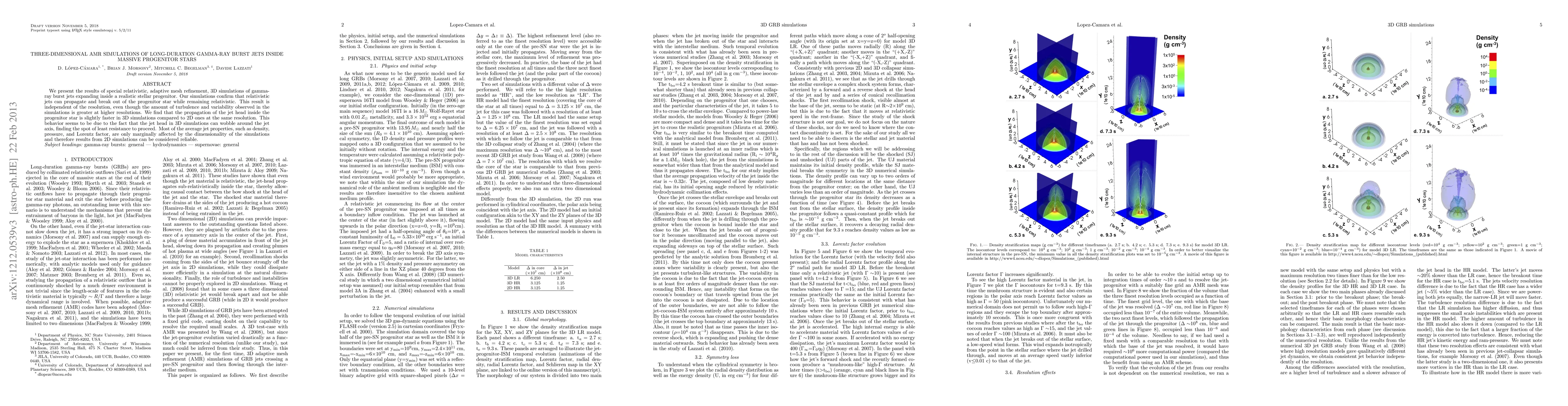 The research presents 3D simulations of Gamma-Ray Burst jets within massive stars, confirming jets can break out while maintaining relativistic speeds, irrespective of resolution. The study finds that jet head progression is slightly quicker in 3D simulations due to its wobbling motion, seeking less resistant paths, with most jet properties being only slightly influenced by dimensionality.