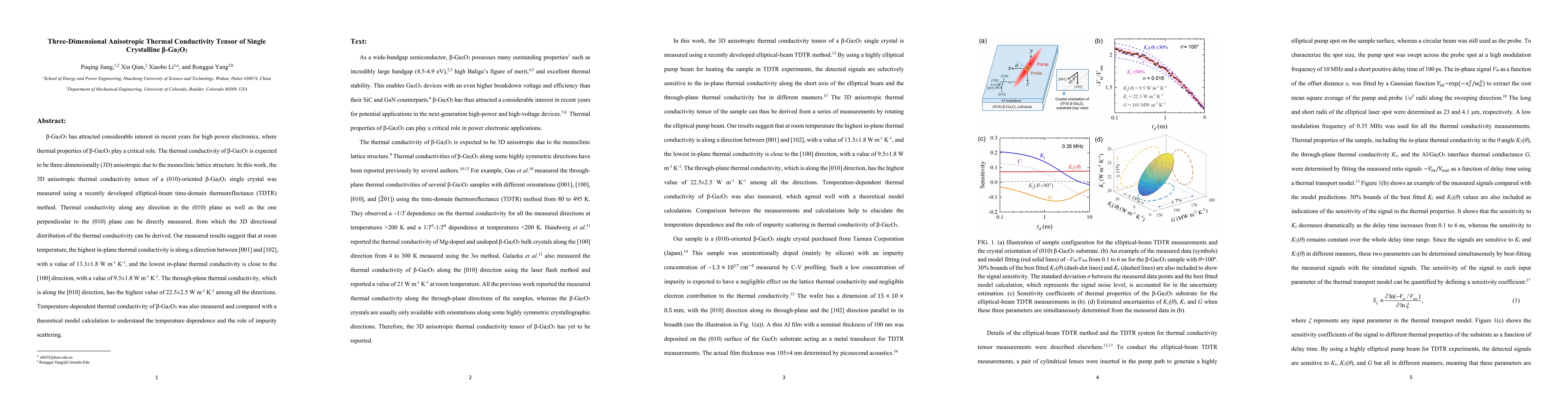This paper measures the three-dimensional anisotropic thermal conductivity tensor of (010)-oriented single crystalline \b{eta}-Ga2O3 using a novel time-domain thermoreflectance method. The highest in-plane thermal conductivity is found between [001] and [102] directions, while the lowest is near the [100] direction, with through-plane conductivity along [010] being the highest.
