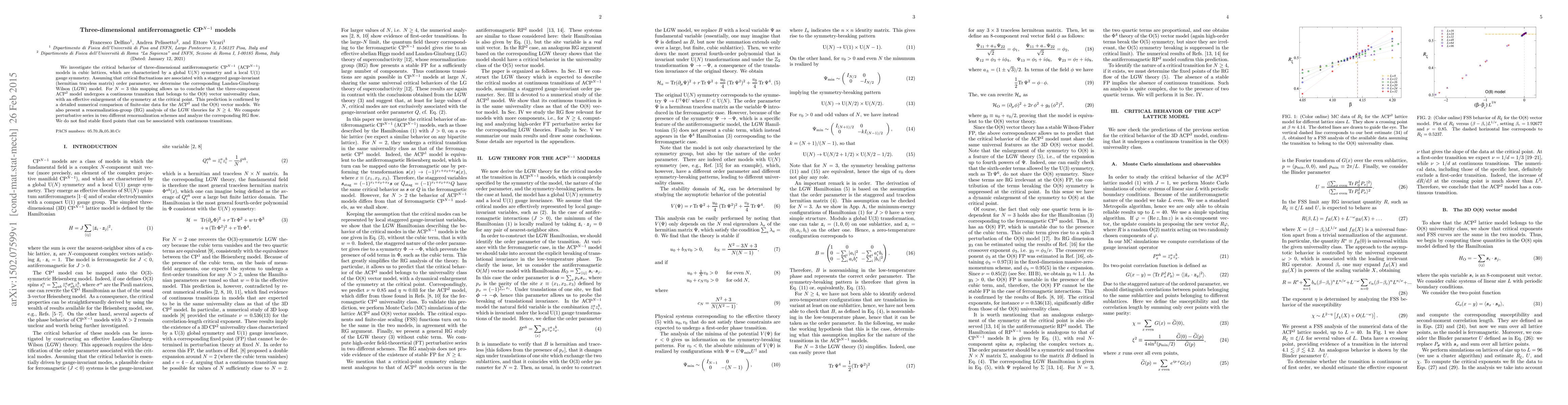 This paper investigates the critical behavior of three-dimensional antiferromagnetic CP(N-1) models, determining their Landau-Ginzburg-Wilson model and predicting a continuous transition for N=3 belonging to the O(8) vector universality class, confirmed via numerical analysis. For N>3, renormalization-group analysis reveals no stable fixed points for continuous transitions.