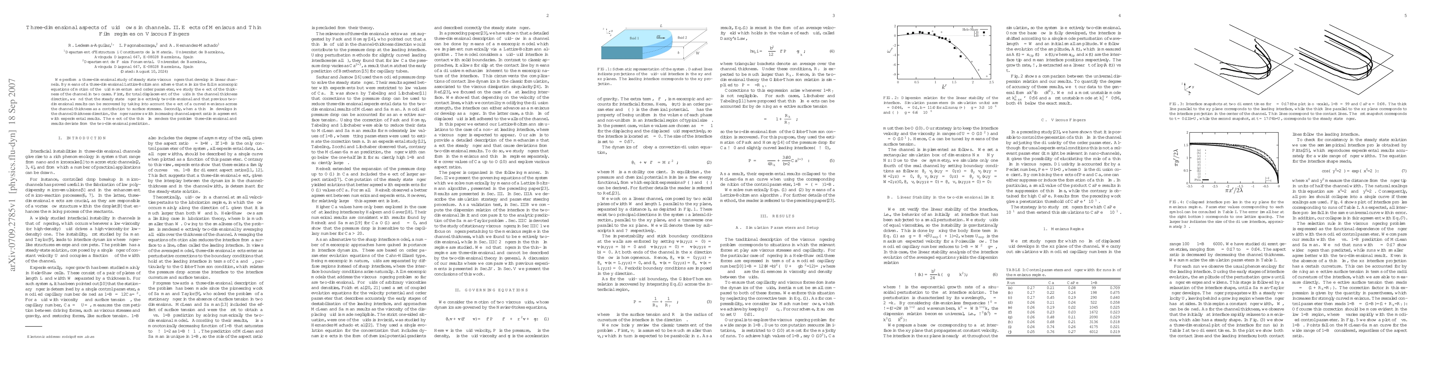 Researchers studied how fluids behave in channels with varying thicknesses, finding that the behavior changes significantly when a thin film forms, deviating from two-dimensional predictions. They used a 3D Lattice-Boltzmann scheme to model these effects.