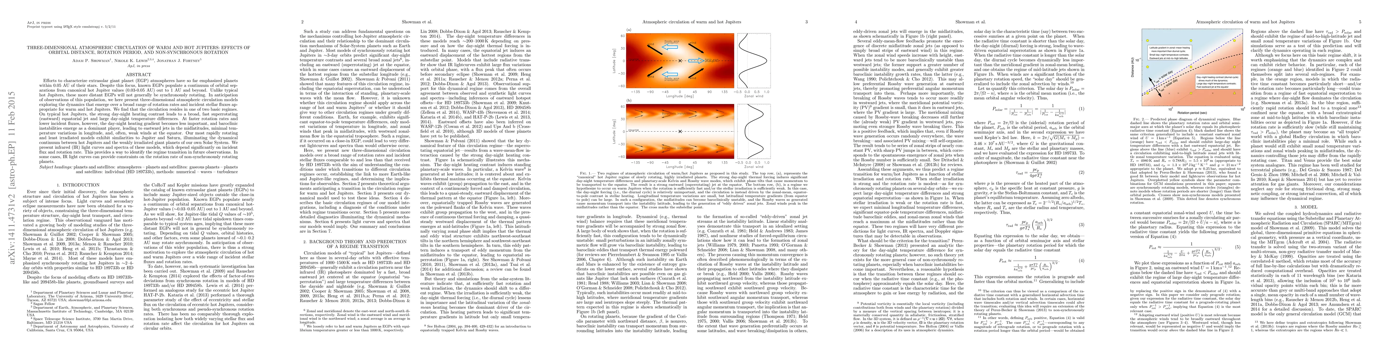 This paper explores the three-dimensional atmospheric circulation of warm and hot Jupiters, revealing two basic circulation regimes influenced by rotation rates and stellar flux. The study finds that superrotating equatorial jets dominate in strongly irradiated, slowly rotating planets, while baroclinic instabilities lead to midlatitude jets in faster rotators with lower incident fluxes.