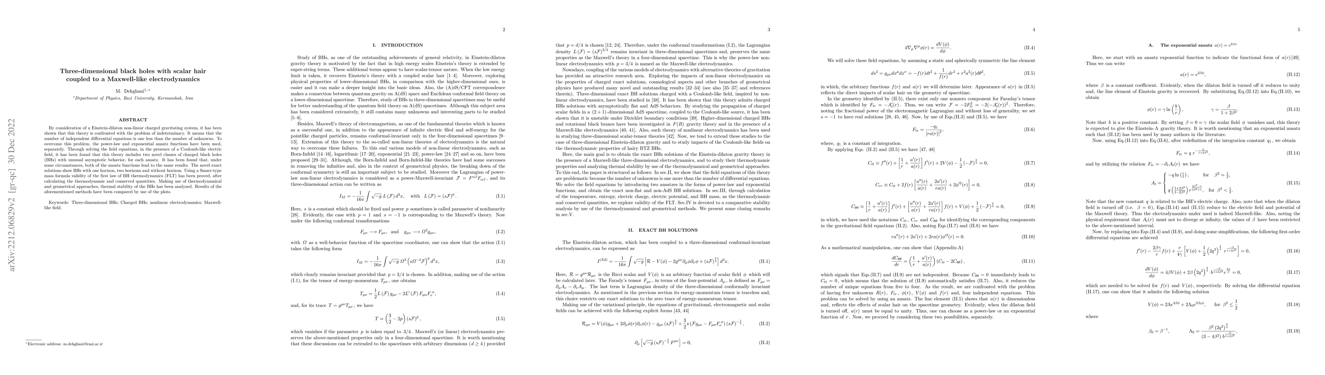 This paper explores three-dimensional black holes with scalar hair and Maxwell-like electrodynamics, revealing indeterminacy in the Einstein-dilaton system. Novel charged black hole solutions with distinct asymptotic behaviors are derived using power-law and exponential ansatz, and their thermodynamic stability is analyzed.