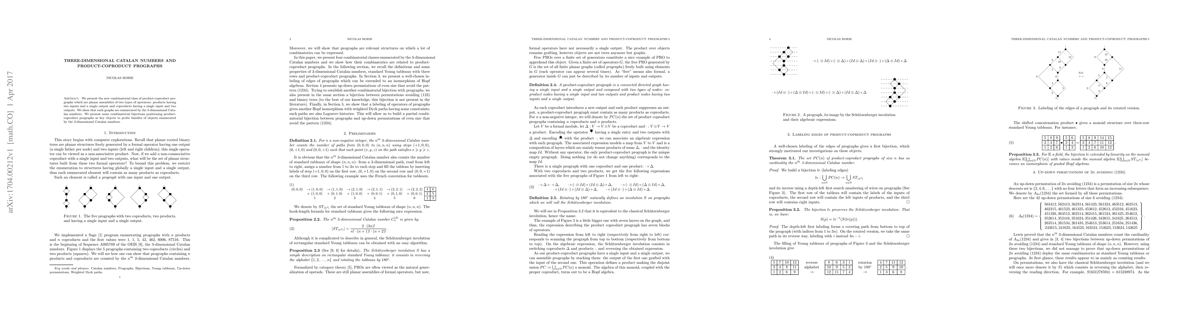 We present the new combinatorial class of product-coproduct prographs which are planar assemblies of two types of operators: products having two inputs and a single output and coproducts having a single input and two outputs. We show that such graphs are enumerated by the $3$-dimensional Catalan numbers. We present some combinatorial bijections positioning product-coproduct prographs as key objects to probe families of objects enumerated by the $3$-dimensional Catalan numbers.