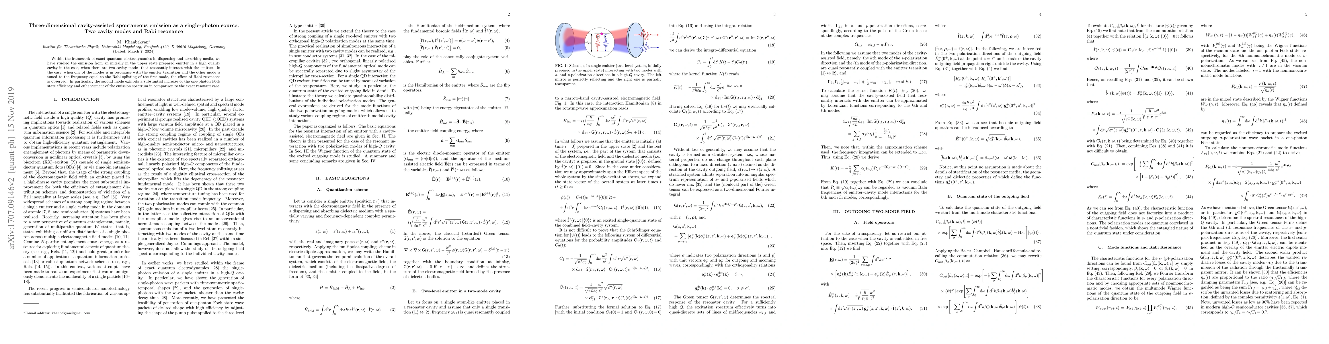 Within the framework of exact quantum electrodynamics in dispersing and absorbing media, we have studied the emission from an initially in the upper state prepared emitter in a high quality cavity in the case, when there are two cavity modes that resonantly interact with the emitter. In particular, when one of the modes is in resonance with the emitter transition and the other mode is tuned to the frequency equal to the Rabi splitting of the first mode, the effect of Rabi resonance is observed.