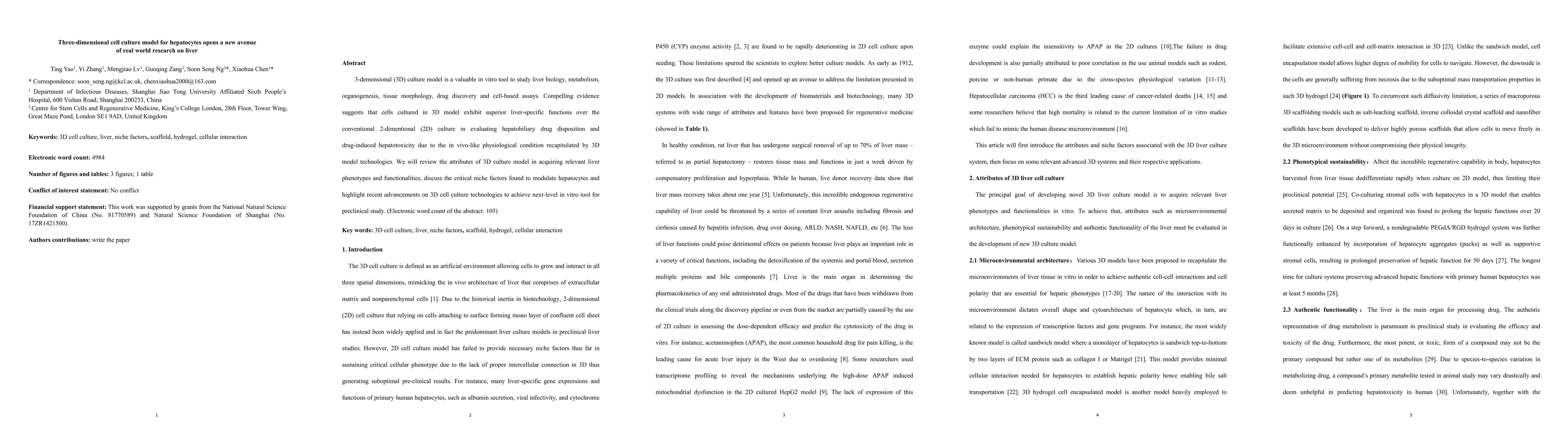 This paper reviews the advantages of 3D cell culture models for hepatocytes, highlighting their superior liver-specific functions compared to 2D cultures, and discusses recent advancements in 3D technologies for more accurate preclinical studies. The focus is on the physiological conditions and niche factors that enhance liver phenotypes and functionalities.