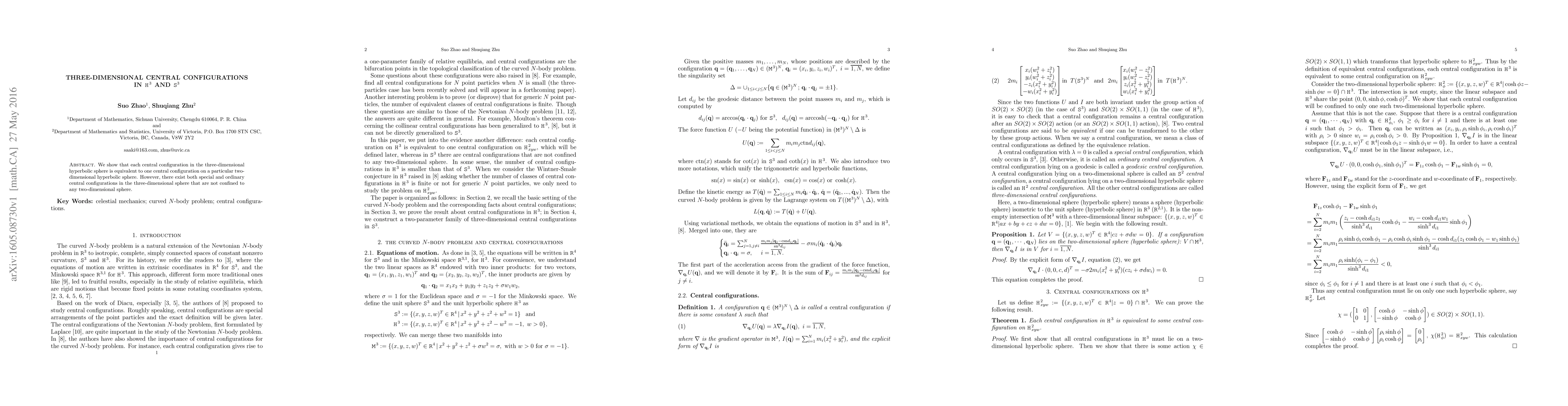 Researchers found that 3D hyperbolic sphere central configurations can map to equivalent configurations on 2D spheres, but some remain unique to the 3D space.
