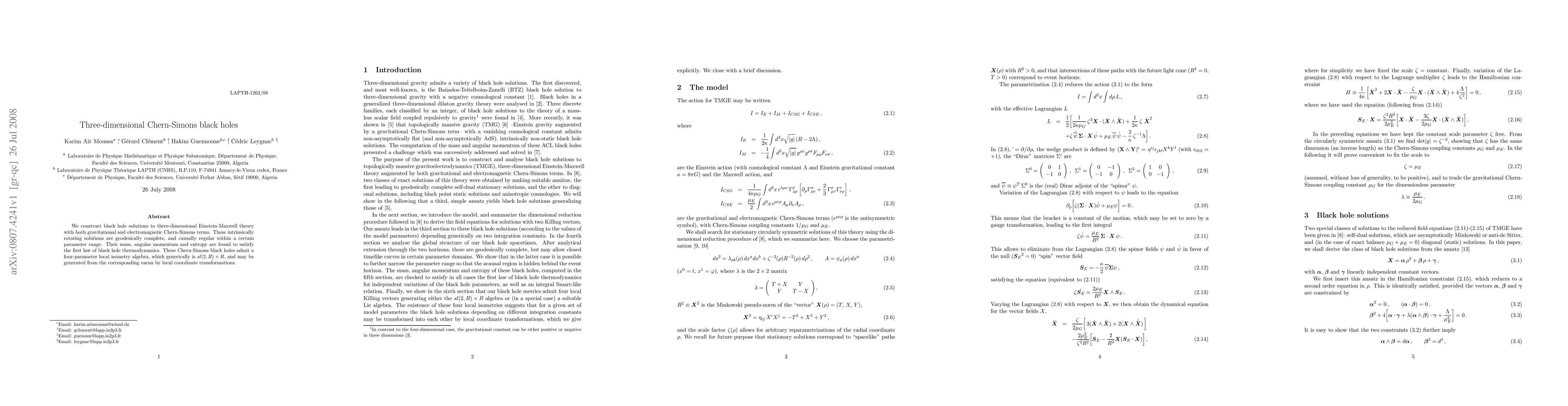 This paper constructs rotating black hole solutions in three-dimensional Einstein-Maxwell theory with Chern-Simons terms, demonstrating their geodesic completeness and causal regularity. The solutions satisfy the first law of thermodynamics and exhibit a four-parameter local isometry algebra.