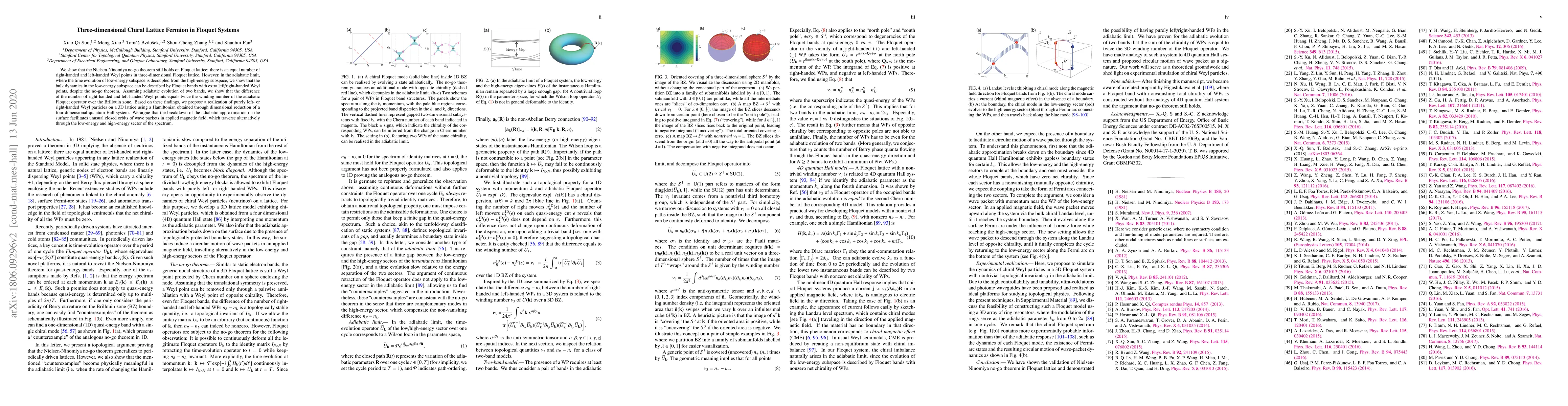 We show that the Nielsen-Ninomiya no-go theorem still holds on Floquet lattice: there is an equal number of right-handed and left-handed Weyl points in 3D Floquet lattice. However, in the adiabatic limit, where the time evolution of low-energy subspace is decoupled from the high-energy subspace, we show that the bulk dynamics in the low-energy subspace can be described by Floquet bands with purely left/right-handed Weyl points, despite the no-go theorem. For the adiabatic evolution of two bands, we show that the difference of the number of right-handed and left-handed Weyl points equals twice the winding number of the Floquet operator of the low-energy subspace over the Brillouin zone, thus guaranteeing the number of Weyl points to be even. Based on this observation, we propose to realize purely left/right-handed Weyl points in the adiabatic limit using a Hamiltonian obtained through dimensional reduction of four-dimensional quantum Hall system. We address the breakdown of the adiabatic limit on the surface due to the presence of gapless boundary states. This effect induces a circular motion of a wave packet in an applied magnetic field, travelling alternatively in the low-energy and high-energy subspace of the system.