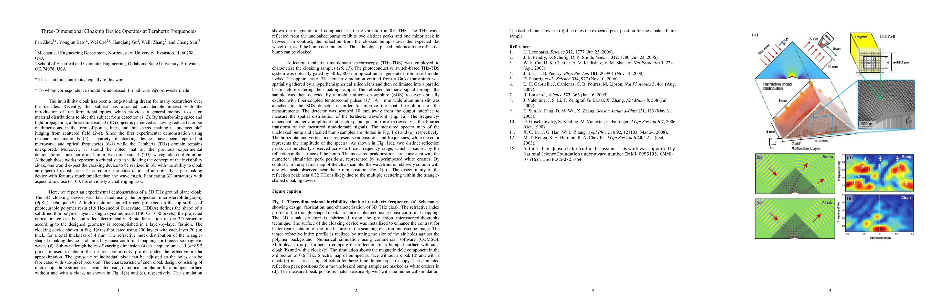 Researchers demonstrate a 3D terahertz cloaking device that operates at frequencies beyond traditional microwave and optical ranges, successfully hiding an object from detection in three dimensions.