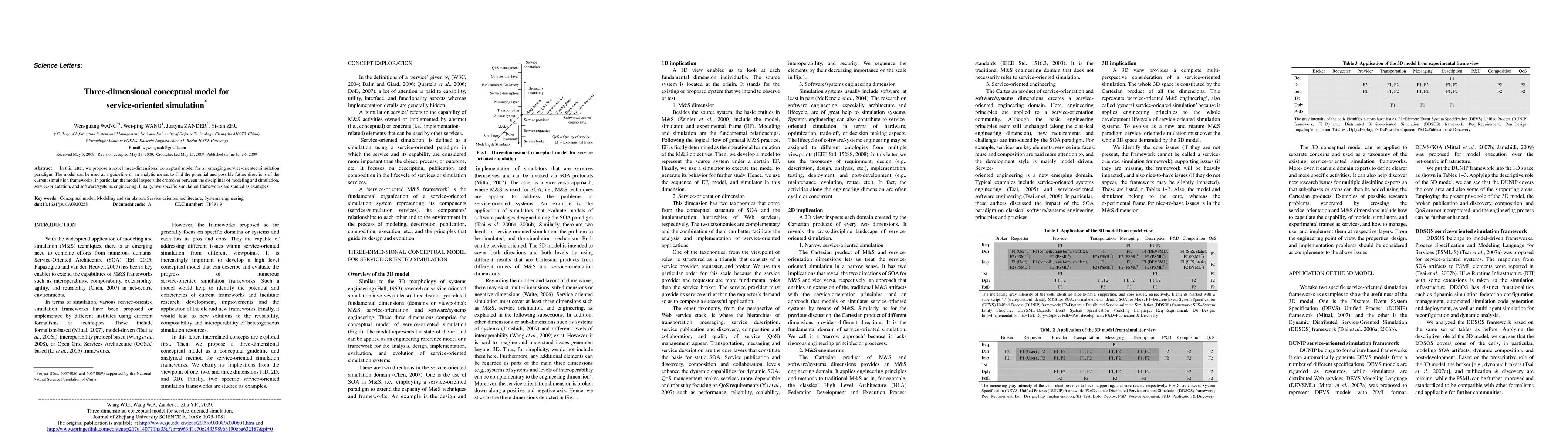 This paper introduces a three-dimensional conceptual model for service-oriented simulation, aiming to explore the integration of modeling, simulation, service-orientation, and software/systems engineering. It uses two specific frameworks to illustrate the model's potential.