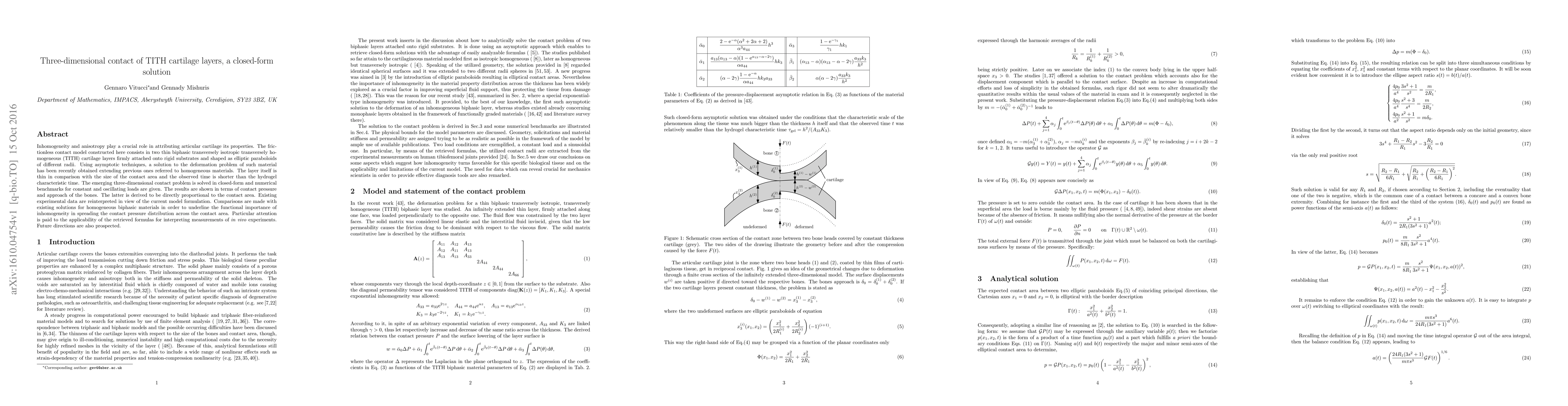 Researchers developed a new model to simulate 3D contact between cartilage layers, finding that inhomogeneity and anisotropy significantly affect the distribution of pressure across the contact area.