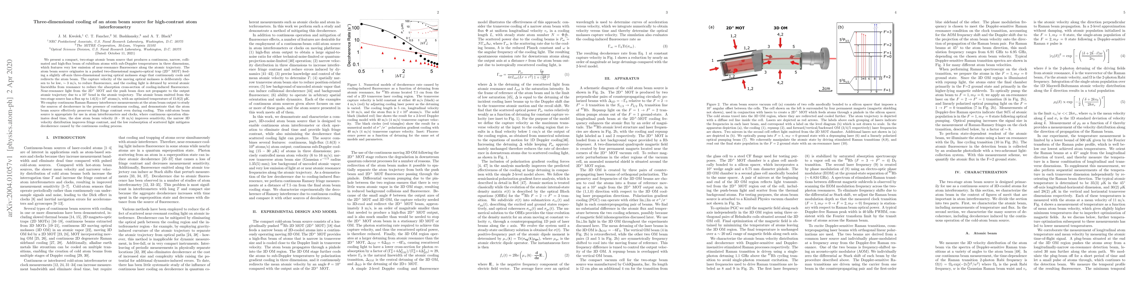 This paper describes a compact, two-stage atomic beam source that produces a high-flux, sub-Doppler temperature beam of rubidium atoms, ideal for high-contrast atom interferometry. The source features low emission of near-resonance fluorescence and maintains high fringe contrast during continuous cooling, making it suitable for use in atom interferometers and clocks.