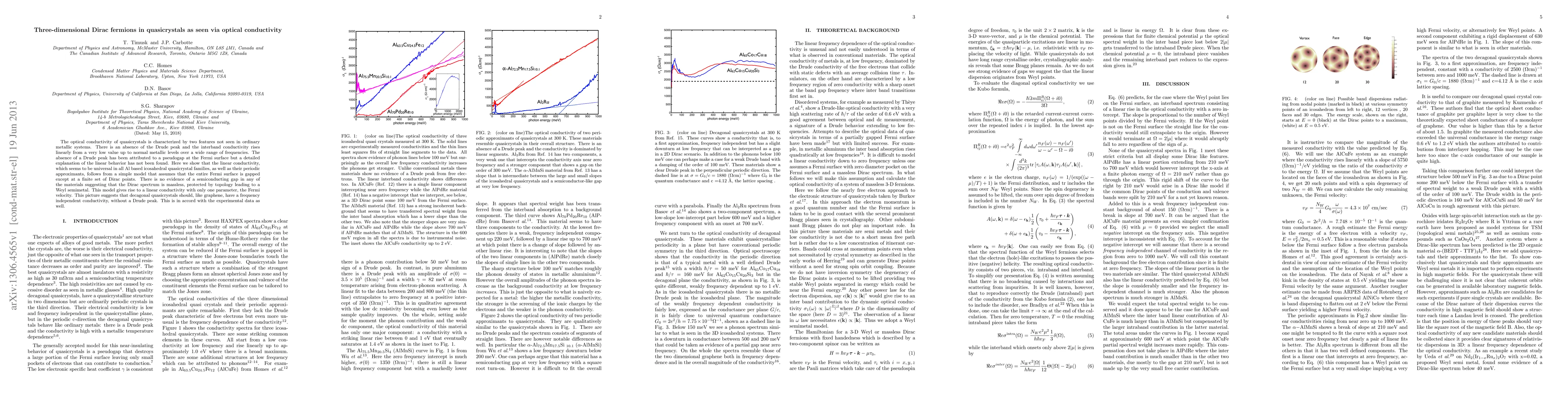This study reveals that quasicrystals exhibit unique optical conductivity features, with linear interband conductivity and absence of a Drude peak, attributed to a topologically protected massless Dirac fermion spectrum, suggesting a Weyl semimetal state. Experimental data supports this model, indicating frequency-independent conductivity.