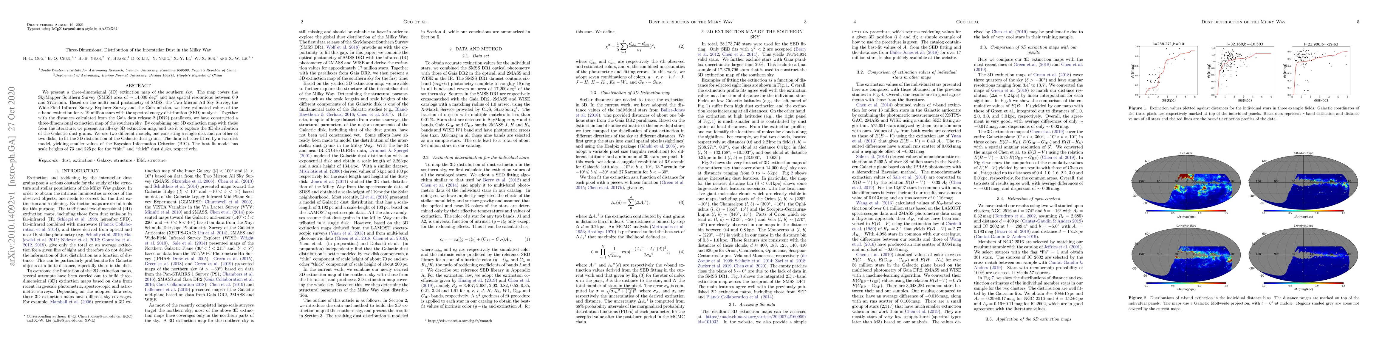 This paper presents a three-dimensional extinction map of the southern sky derived from multi-band photometry and Gaia data, revealing a two-disk model for the Galactic dust distribution with scale heights of 73 pc and 225 pc, respectively. The findings suggest a more complex interstellar dust structure than previously thought.