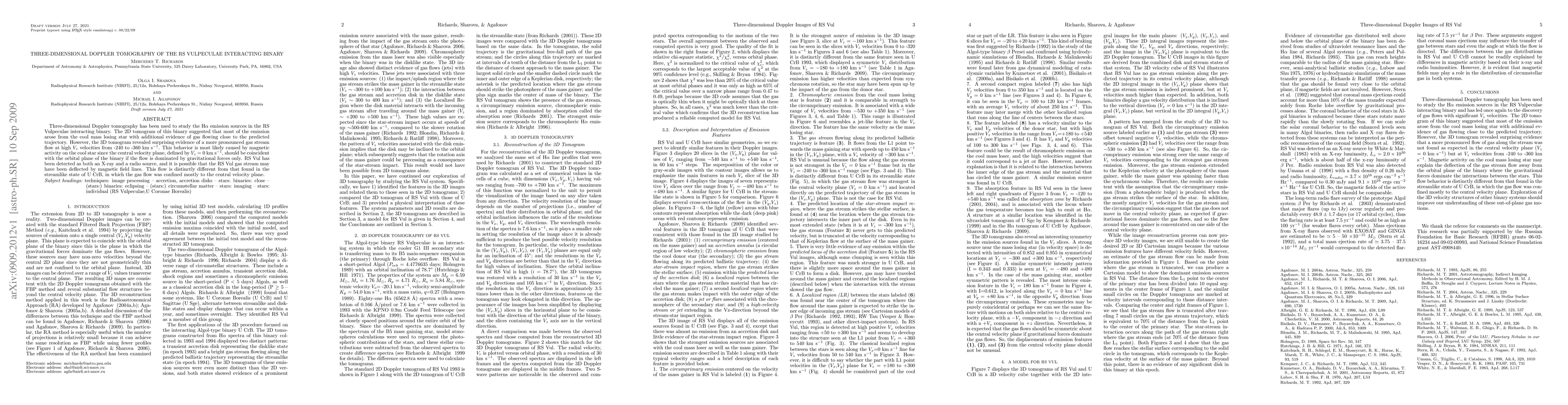 Three-dimensional Doppler tomography has been used to study the H$\alpha$ emission sources in the RS Vulpeculae interacting binary. The 2D tomogram of this binary suggested that most of the emission arose from the cool mass losing star with additional evidence of gas flowing close to the predicted trajectory. However, the 3D tomogram revealed surprising evidence of a more pronounced gas stream flow at high $V_z$ velocities from -240 to -360 km s{$^{-1}$}. This behavior is most likely caused by magnetic activity on the cool star since the central velocity plane, defined by $V_z$ = 0 km s{$^{-1}$}, should be coincident with the orbital plane of the binary if the flow is dominated by gravitational forces only. RS Vul has been detected as both an X-ray and a radio source, and it is possible that the RS Vul gas stream may have been deflected by magnetic field lines. This flow is distinctly different from that found in the streamlike state of U CrB, in which the gas flow was confined mostly to the central velocity plane.