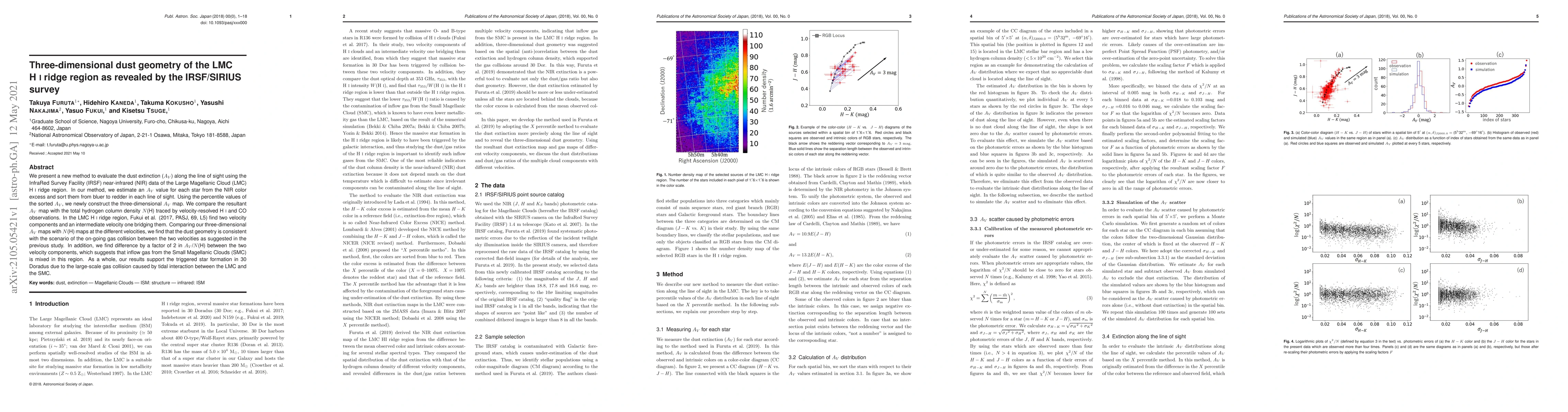 This paper introduces a new method to evaluate dust extinction using IRSF NIR data in the LMC HI ridge region, constructing a three-dimensional AV map. The study finds that the dust geometry aligns with ongoing gas collisions between two velocity components, supporting triggered star formation in 30 Doradus due to large-scale gas interactions.