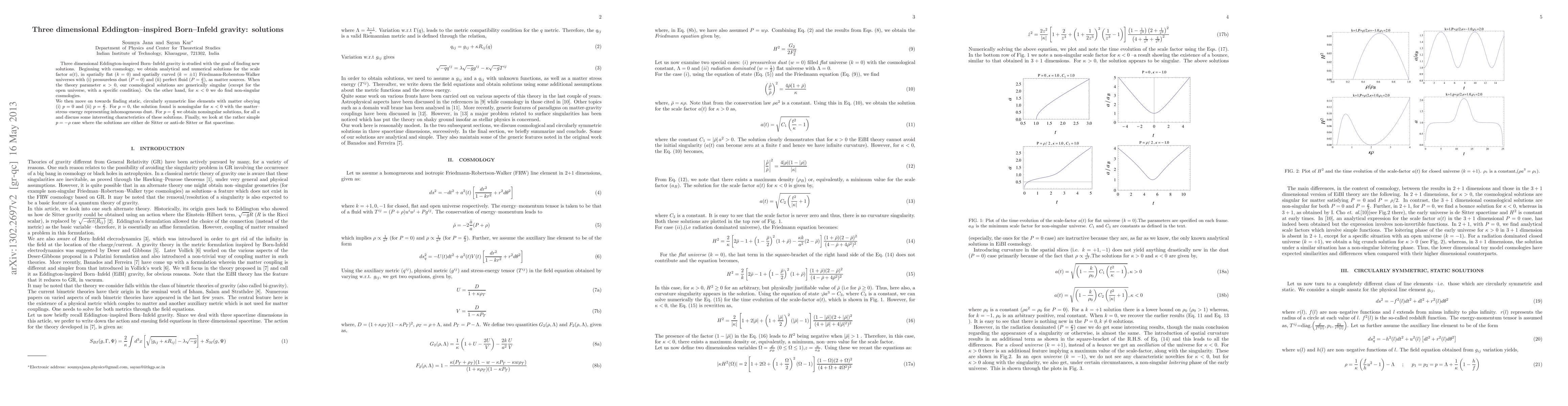 Researchers found new solutions to three-dimensional Eddington-inspired Born-Infeld gravity, including nonsingular cosmologies for certain conditions and interesting characteristics of static, circularly symmetric line elements.