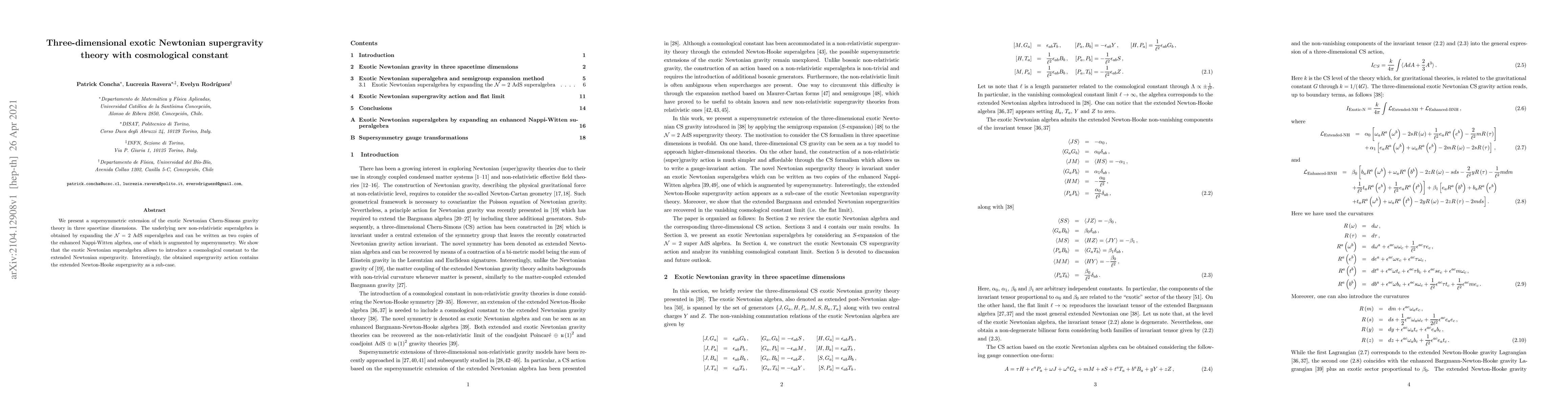 This paper extends the exotic Newtonian Chern-Simons gravity theory to a supersymmetric form in three dimensions, introducing a new non-relativistic superalgebra. It incorporates a cosmological constant and includes the extended Newton-Hooke supergravity as a special case.