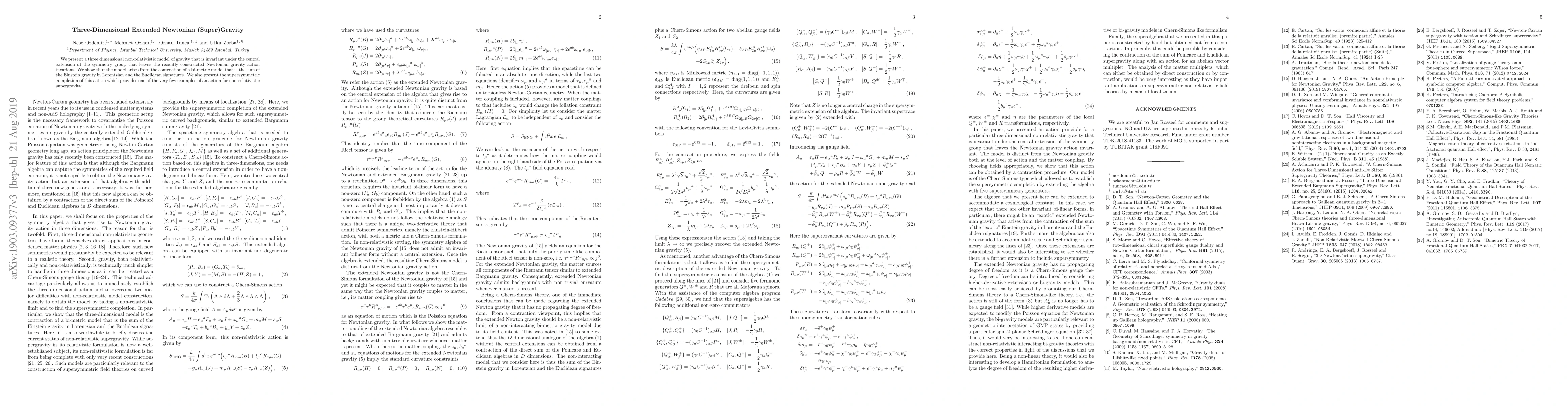 We present a three dimensional non-relativistic model of gravity that is invariant under the central extension of the symmetry group that leaves the recently constructed Newtonian gravity action invariant. We show that the model arises from the contraction of a bi-metric model that is the sum of the Einstein gravity in Lorentzian and the Euclidean signatures. We also present the supersymmetric completion of this action which provides one of the very few examples of an action for non-relativistic supergravity.