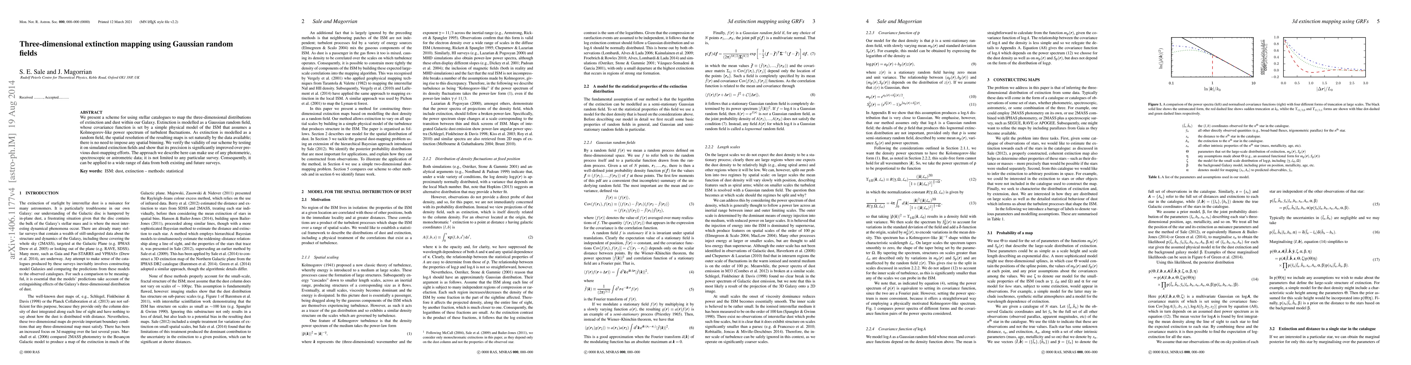 This paper introduces a method for mapping three-dimensional extinction and dust distribution in our Galaxy using stellar catalogues and Gaussian random fields. The approach models extinction as a random field, improving precision over previous methods and allowing for flexible application to various data types.