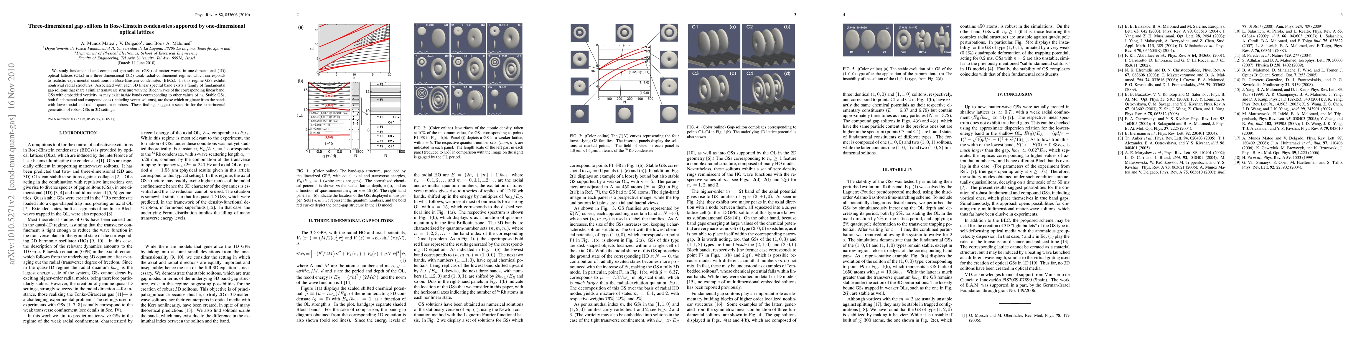 This paper investigates fundamental and compound gap solitons in Bose-Einstein condensates within one-dimensional optical lattices under three-dimensional weak-radial confinement. The study reveals that stable solitons, including those with embedded vorticity, originate from the lowest axial and radial quantum bands, suggesting a feasible experimental method for generating robust gap solitons in such settings.