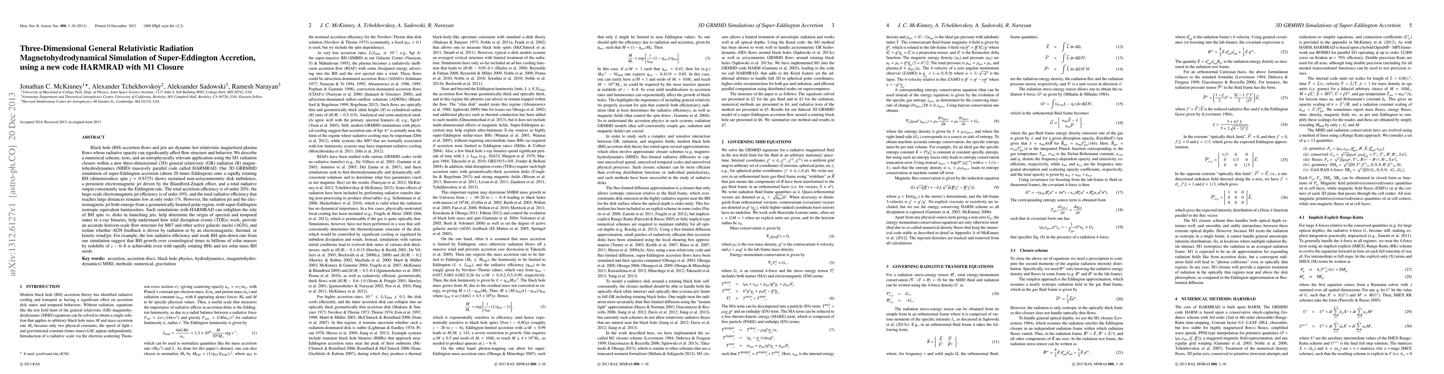 The development and application of the HARMRAD code, a new 3D GRRMHD massively parallel code incorporating the M1 closure scheme, enabling detailed simulations of super-Eddington accretion around rapidly rotating black holes.