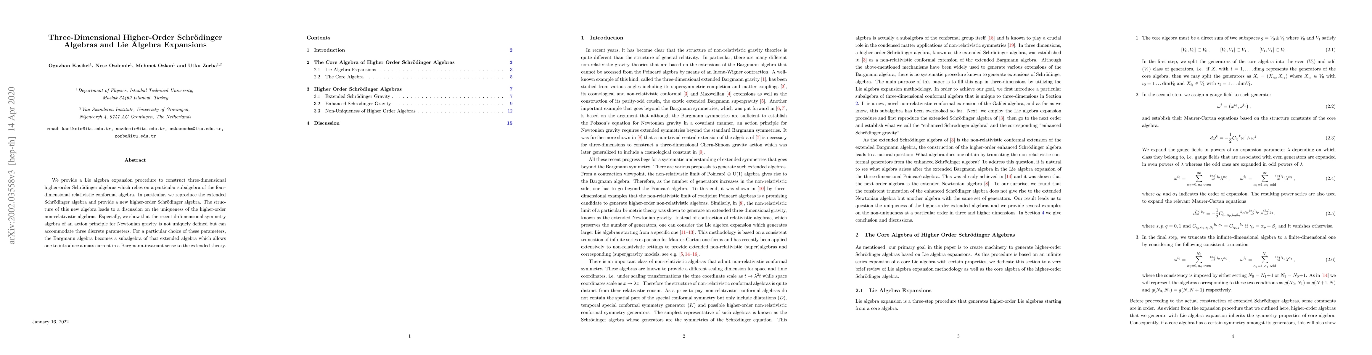 We provide a Lie algebra expansion procedure to construct three-dimensional higher-order Schr\"odinger algebras which relies on a particular subalgebra of the four-dimensional relativistic conformal algebra. In particular, we reproduce the extended Schr\"odinger algebra and provide a new higher-order Schr\"odinger algebra. The structure of this new algebra leads to a discussion on the uniqueness of the higher-order non-relativistic algebras. Especially, we show that the recent d-dimensional symmetry algebra of an action principle for Newtonian gravity is not uniquely defined but can accommodate three discrete parameters. For a particular choice of these parameters, the Bargmann algebra becomes a subalgebra of that extended algebra which allows one to introduce a mass current in a Bargmann-invariant sense to the extended theory.