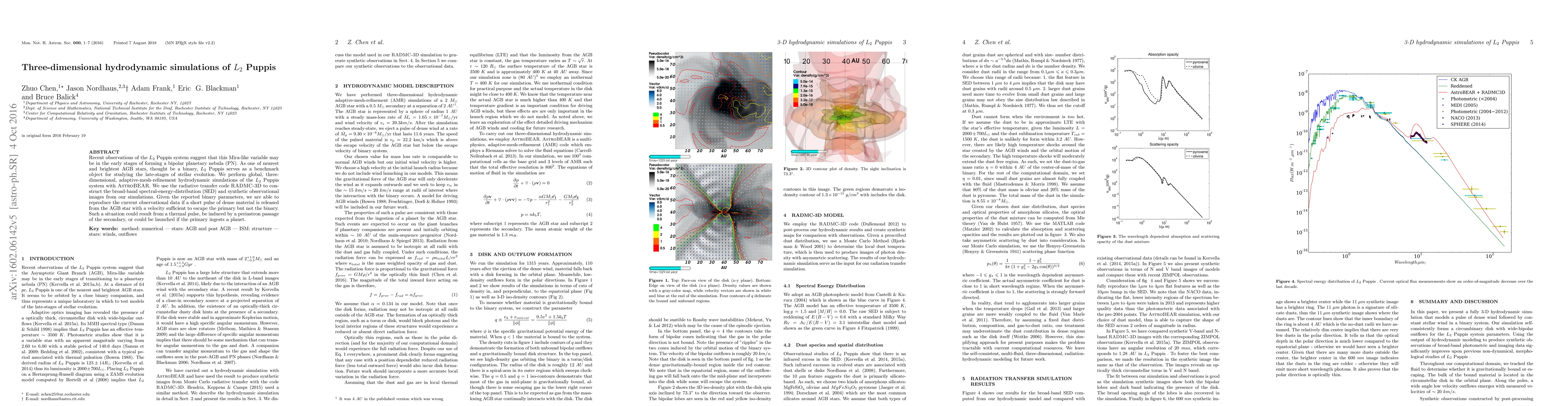 Recent observations of the L2 Puppis system suggest that this Mira-like variable may be in the early stages of forming a bipolar planetary nebula (PN). As one of nearest and brightest AGB stars, thought be a binary, L2 Puppis serves as a benchmark object for studying the late-stages of stellar evolution. We perform global, three-dimensional, adaptive-mesh-refinement hydrodynamic simulations of the L2 Puppis system with AstroBEAR. We use the radiative transfer code RADMC-3D to construct the broad-band spectral-energy-distribution (SED) and synthetic observational images from our simulations. Given the reported binary parameters, we are able to reproduce the current observational data if a short pulse of dense material is released from the AGB star with a velocity sufficient to escape the primary but not the binary. Such a situation could result from a thermal pulse, be induced by a periastron passage of the secondary, or could be launched if the primary ingests a planet.