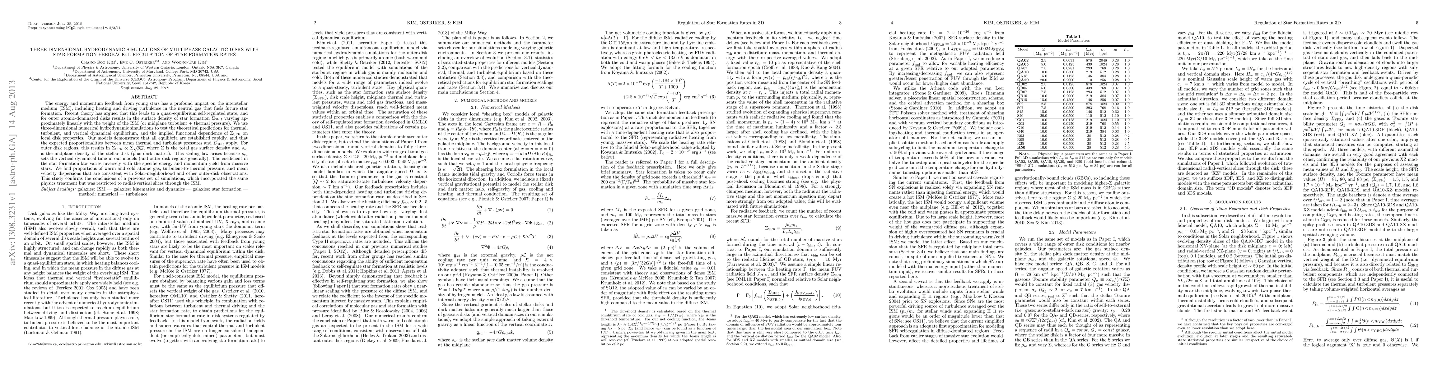 This paper uses three-dimensional hydrodynamic simulations to test theoretical predictions about the self-regulated star formation rates in multiphase galactic disks, showing that star formation is proportional to the square root of the midplane density of the stellar disk. The study confirms previous findings and demonstrates the rapid establishment of thermal, turbulent, and vertical dynamical equilibrium.