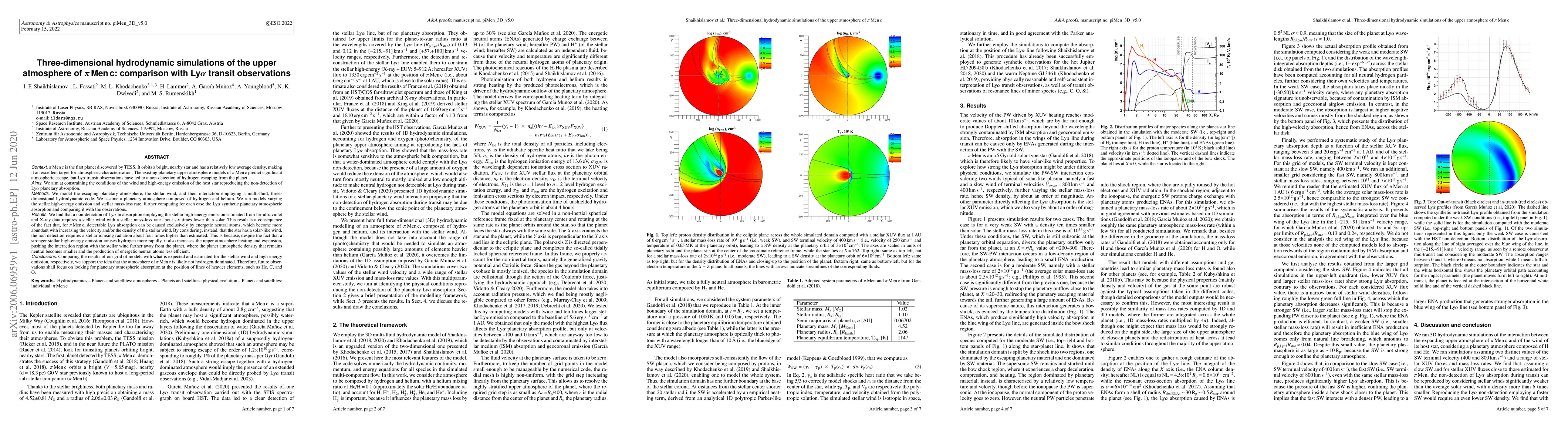 This research uses three-dimensional hydrodynamic simulations to model the upper atmosphere of the exoplanet $\pi$ Men c, comparing the results with Ly$\alpha$ transit observations. The study finds that a lower stellar wind mass-loss rate than solar is required to explain the non-detection of Ly$\alpha$ absorption, suggesting that $\pi$ Men c's atmosphere is likely not hydrogen-dominated.