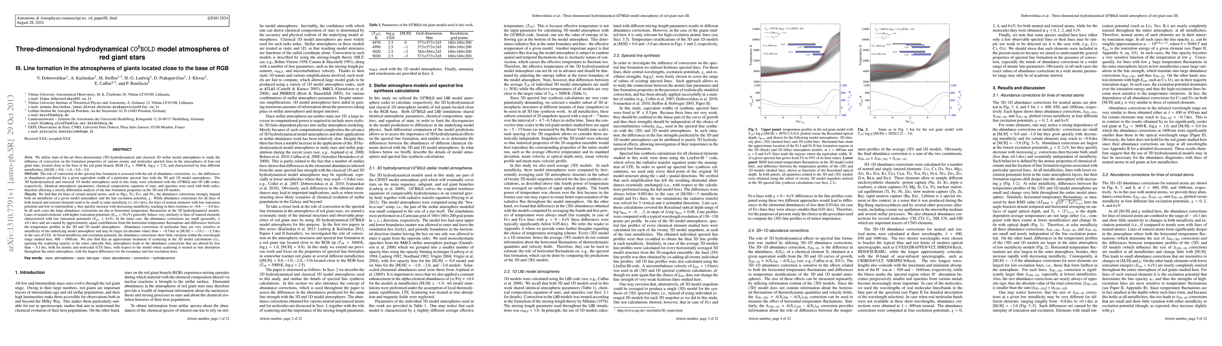This paper investigates the impact of convection on spectral line formation in the atmospheres of red giant stars near the base of the red giant branch using 3D hydrodynamical and 1D classical model atmospheres. It finds significant abundance corrections for certain neutral atoms, especially at lower metallicities, due to horizontal temperature fluctuations in the 3D models, while molecular line corrections are also highly sensitive to metallicity.