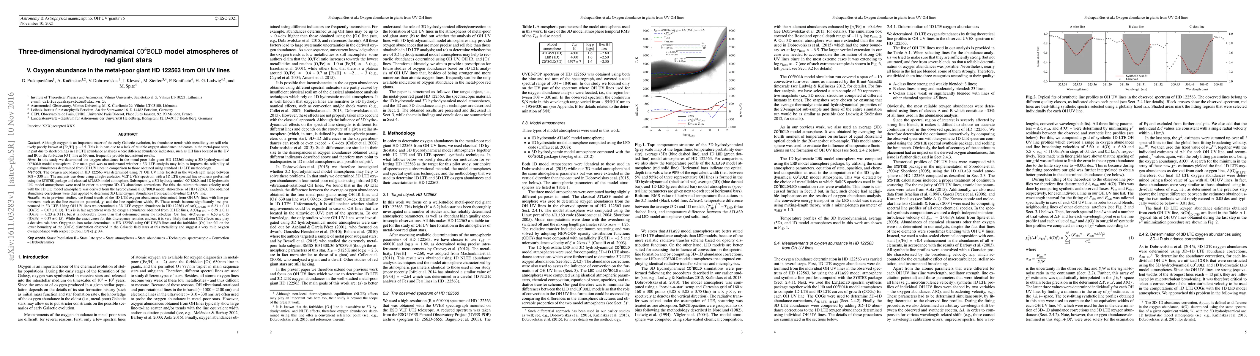 Researchers used 3D hydrodynamical models to analyze oxygen abundance in a red giant star, finding improved agreement with other methods and suggesting non-LTE effects may play a role in discrepancies.