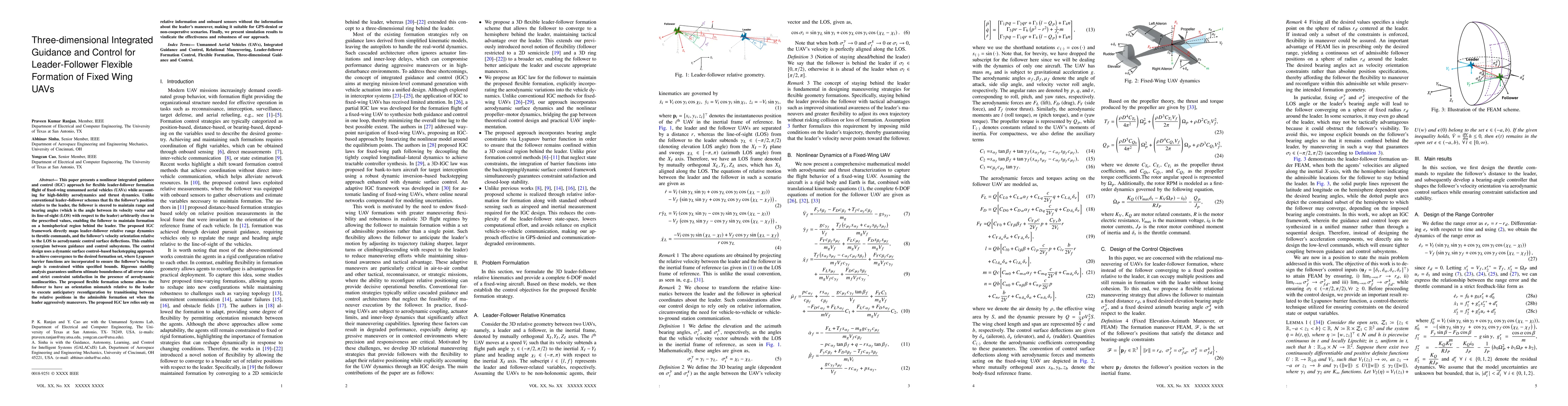 Introduces a fixed elevation and azimuth bearing angle formation (FEAM) scheme that enables followers to maintain fixed distances and bearing angles while allowing for flexible, anticipatory maneuvers through controlled mismatches in flight parameters.