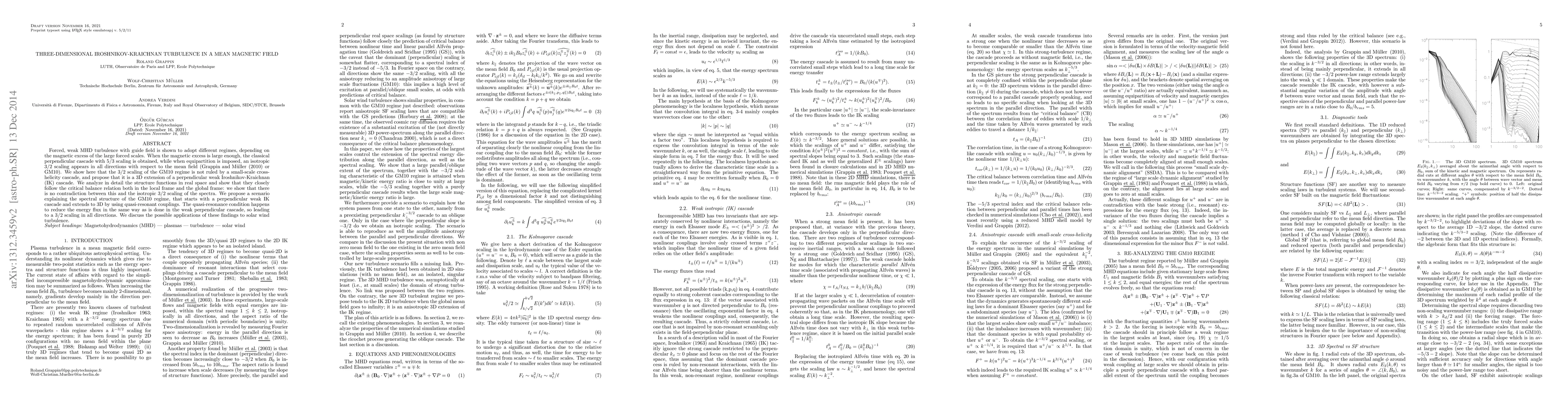 This paper explores the dynamics of forced, weak magnetohydrodynamic (MHD) turbulence in a mean magnetic field, revealing different regimes based on magnetic excess. It proposes a 3D extension of the Iroshnikov-Kraichnan cascade to explain the isotropic $3/2$ scaling observed in the GM10 regime, suggesting quasi-resonant couplings as the mechanism for the $3/2$ scaling in all directions.