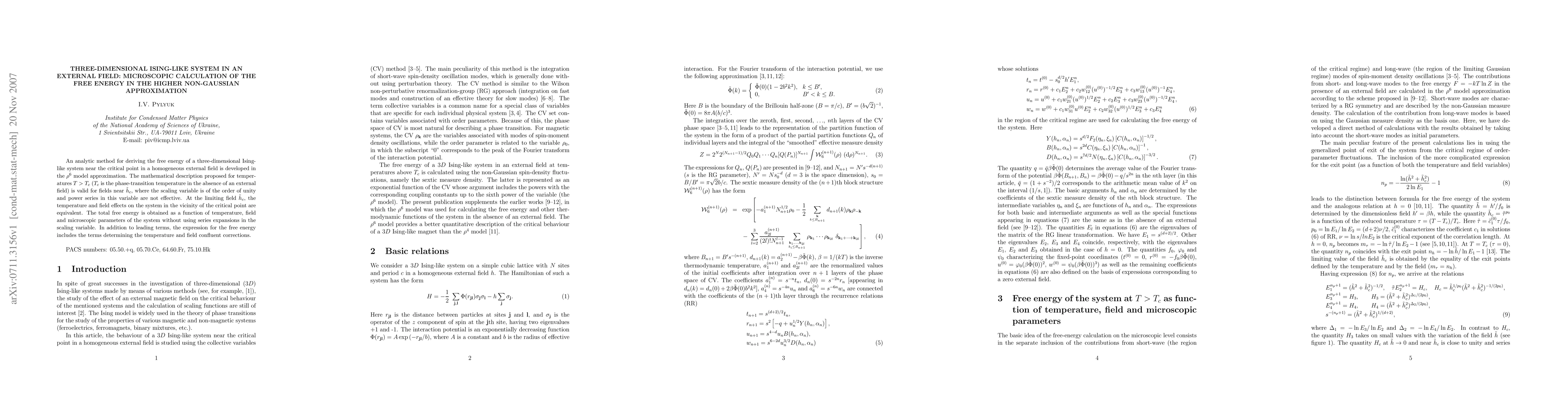 Researchers developed a new method to calculate the free energy of a three-dimensional Ising-like system in an external field, providing a precise formula for temperatures above the critical point.