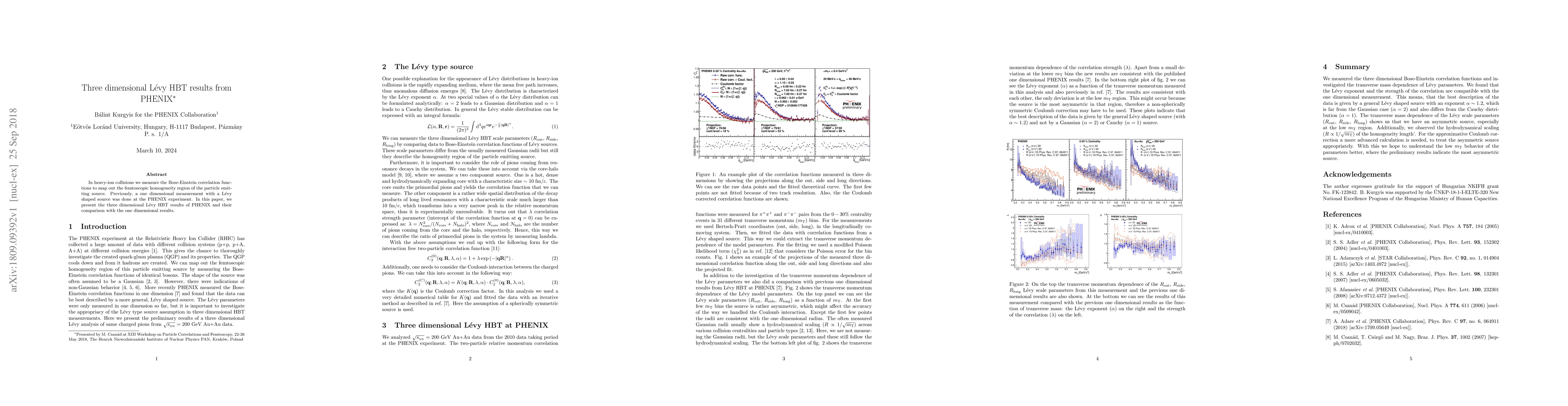 This paper reports three-dimensional HBT results from the PHENIX experiment in heavy-ion collisions, measuring Bose-Einstein correlation functions to characterize the particle source's femtoscopic homogeneity region. It compares these findings with previous one-dimensional L\'evy shaped source measurements.
