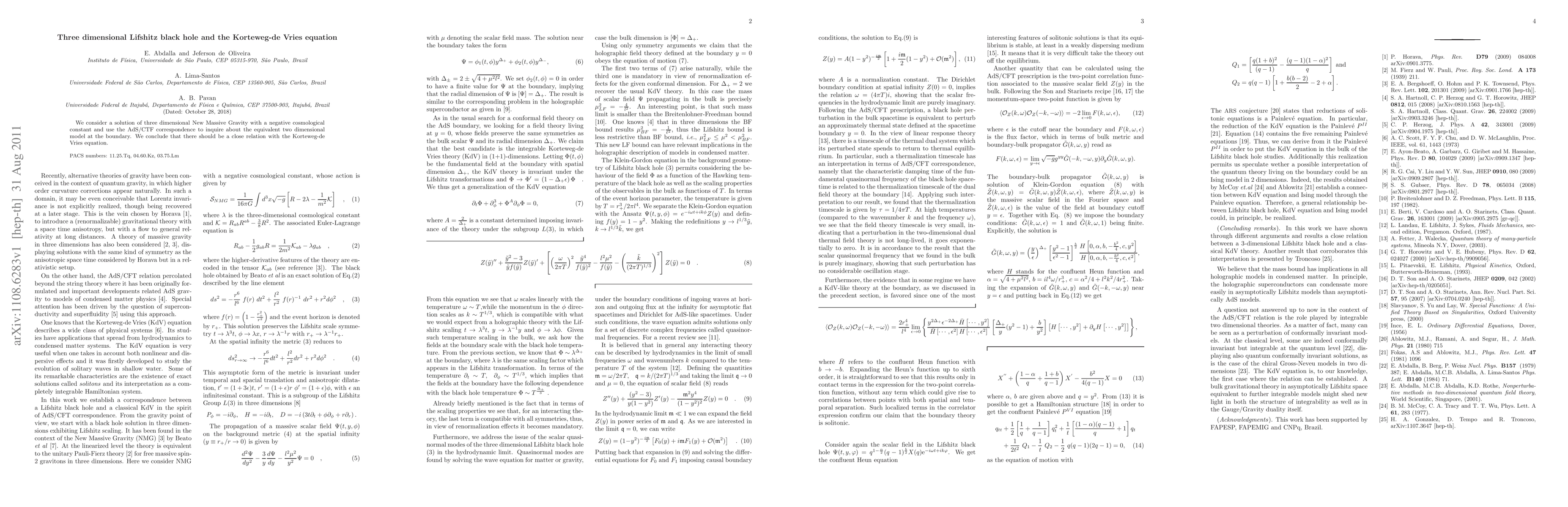 This paper explores a three-dimensional Lifshitz black hole in New Massive Gravity and employs the AdS/CFT correspondence to investigate its two-dimensional boundary model, finding a strong connection to the Korteweg-de Vries equation.