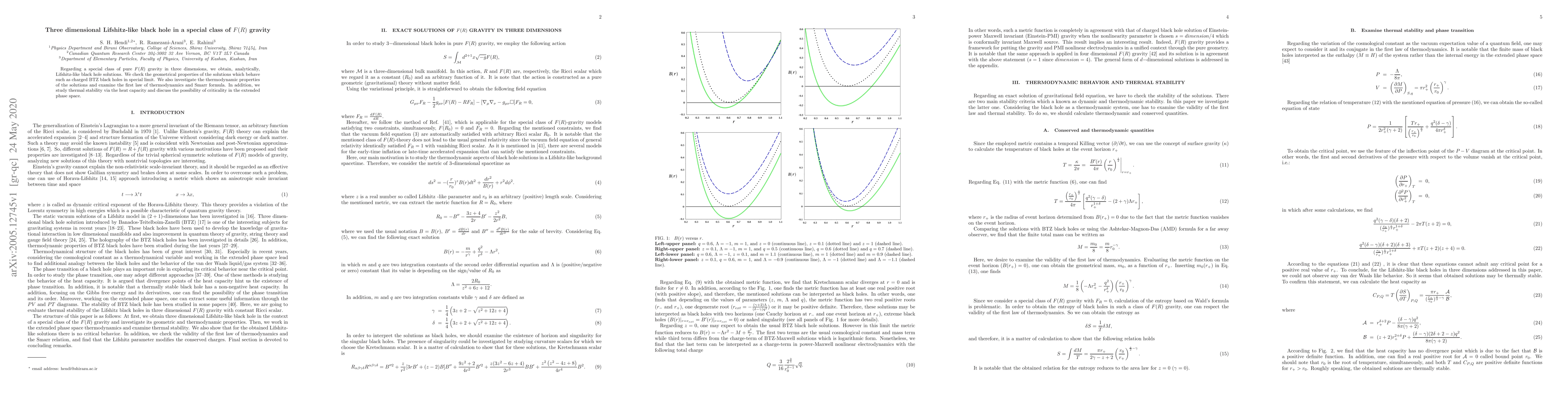 This paper analytically derives Lifshitz-like black hole solutions in a specific type of three-dimensional F(R) gravity, compares their geometrical properties to charged BTZ black holes, and explores their thermodynamic properties, including thermal stability and potential criticality in the extended phase space.
