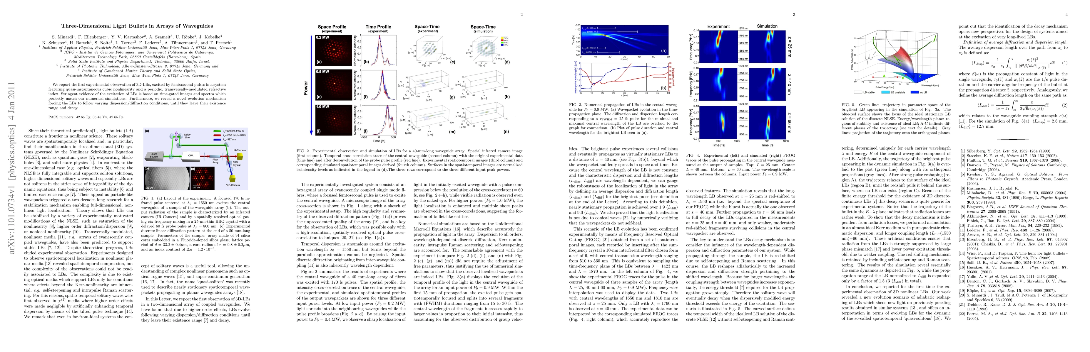 We report the first experimental observation of 3D-LBs, excited by femtosecond pulses in a system featuring quasi-instantaneous cubic nonlinearity and a periodic, transversally-modulated refractive index. Stringent evidence of the excitation of LBs is based on time-gated images and spectra which perfectly match our numerical simulations. Furthermore, we reveal a novel evolution mechanism forcing the LBs to follow varying dispersion/diffraction conditions, until they leave their existence range and decay.