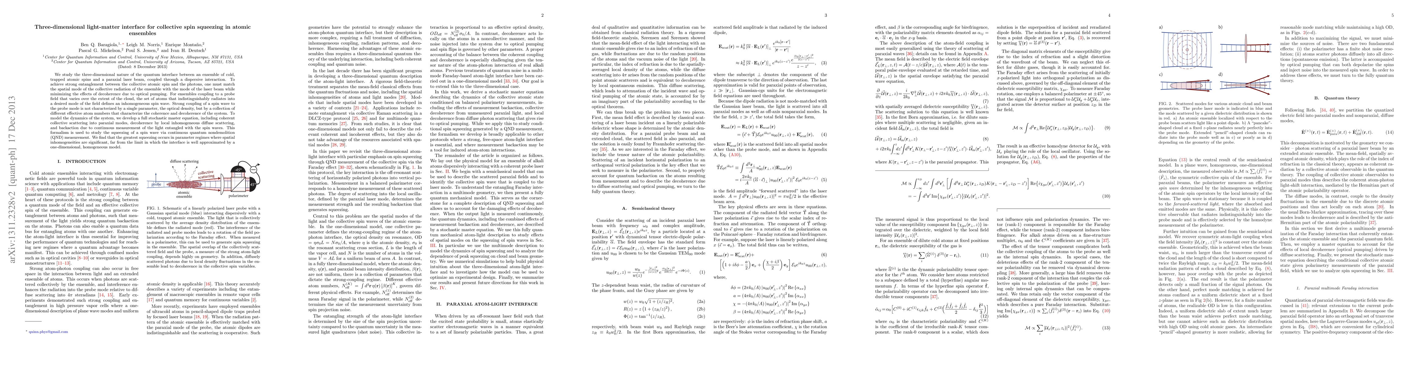 We study the three-dimensional nature of the quantum interface between an ensemble of cold, trapped atomic spins and a paraxial laser beam, coupled through a dispersive interaction. To achieve strong entanglement between the collective atomic spin and the photons, one must match the spatial mode of the collective radiation of the ensemble with the mode of the laser beam while minimizing the effects of decoherence due to optical pumping. For ensembles coupling to a probe field that varies over the extent of the cloud, the set of atoms that indistinguishably radiates into a desired mode of the field defines an inhomogeneous spin wave. Strong coupling of a spin wave to the probe mode is not characterized by a single parameter, the optical density, but by a collection of different effective atom numbers that characterize the coherence and decoherence of the system. To model the dynamics of the system, we develop a full stochastic master equation, including coherent collective scattering into paraxial modes, decoherence by local inhomogeneous diffuse scattering, and backaction due to continuous measurement of the light entangled with the spin waves. This formalism is used to study the squeezing of a spin wave via continuous quantum nondemolition (QND) measurement. We find that the greatest squeezing occurs in parameter regimes where spatial inhomogeneities are significant, far from the limit in which the interface is well approximated by a one-dimensional, homogeneous model.