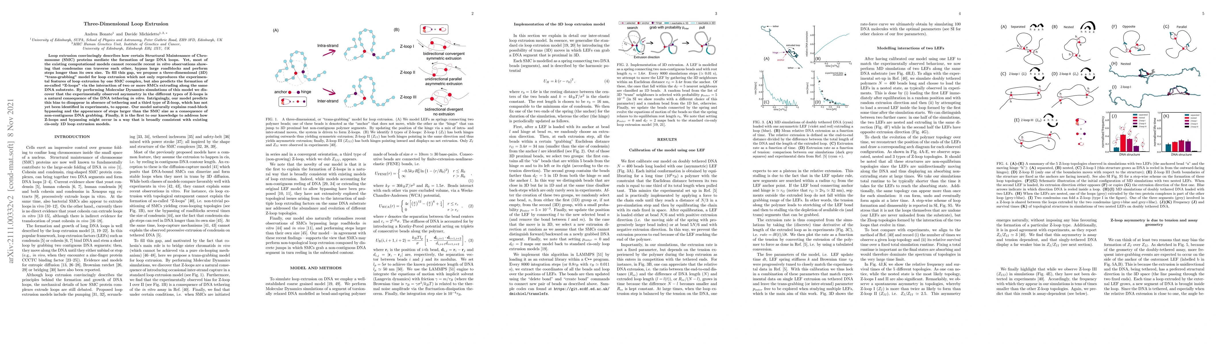 This paper proposes a three-dimensional loop extrusion model that explains how condensins can bypass obstacles and form complex DNA loops, termed "Z-loops," through a "trans-grabbing" mechanism. This model reconciles recent experimental observations and predicts new loop types and behaviors not yet observed in experiments.