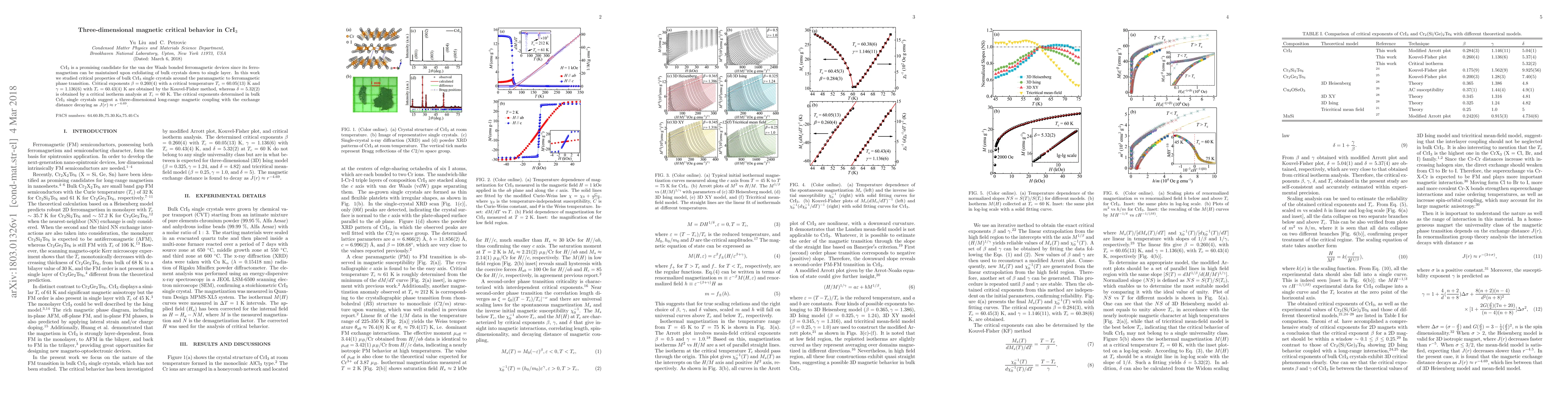 This paper investigates the critical behavior of bulk CrI$_3$ single crystals near the paramagnetic to ferromagnetic phase transition, determining critical exponents and a critical temperature of $T_c$ = 60.05(13) K. The findings suggest a three-dimensional long-range magnetic coupling with an exchange distance decaying as $r^{-4.69}$.