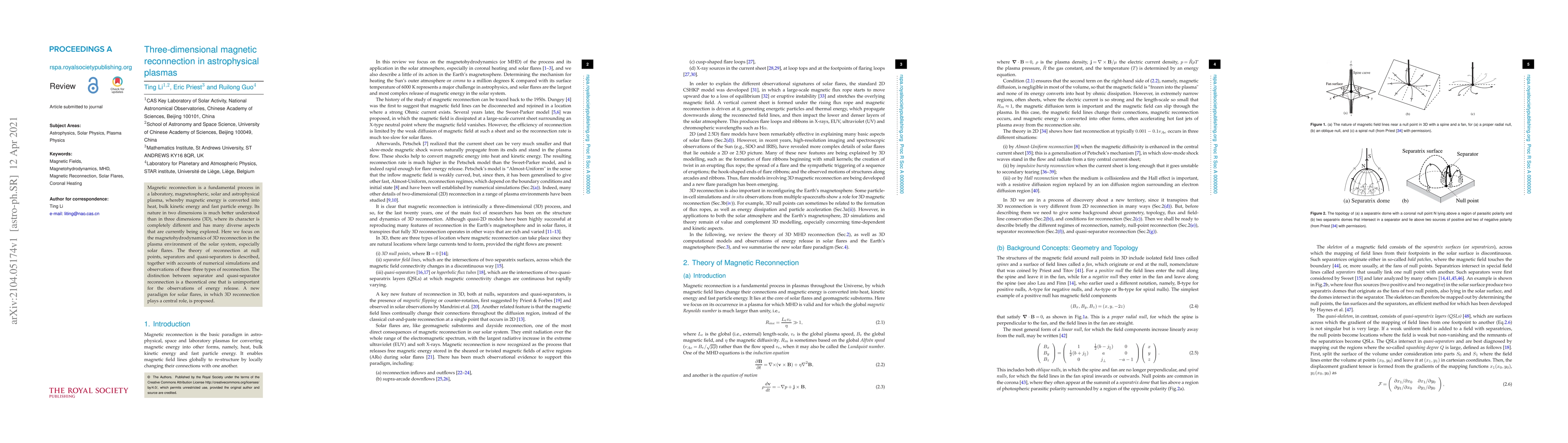 This paper explores the complex nature of three-dimensional magnetic reconnection in astrophysical plasmas, particularly in solar flares. It proposes a new paradigm for solar flares, emphasizing the role of 3D reconnection at null points, separators, and quasi-separators, and discusses the differences between these types based on numerical simulations and observations.