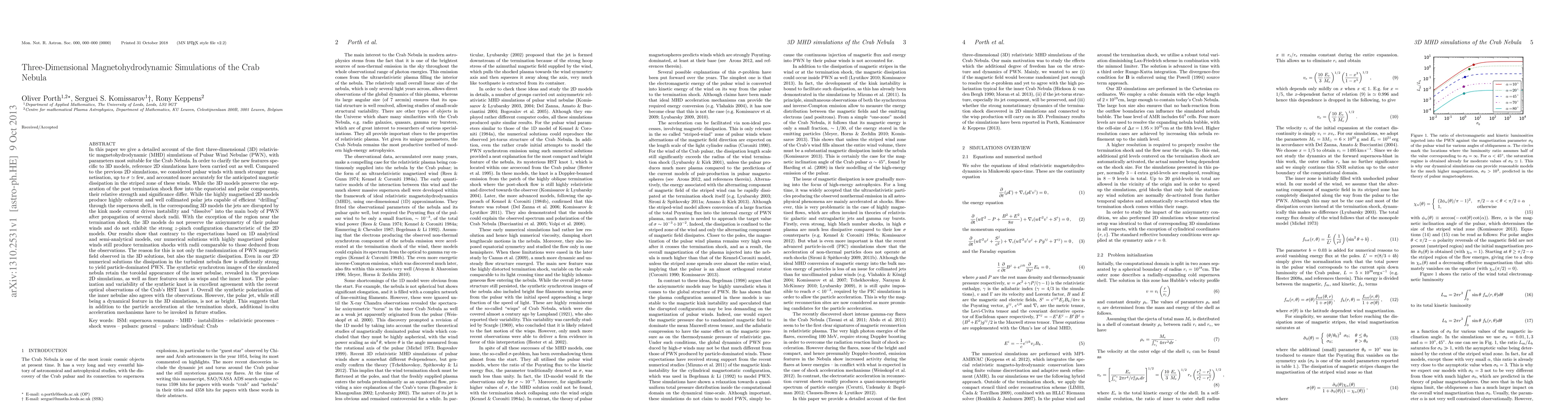 Researchers conducted 3D magnetohydrodynamic simulations of the Crab Nebula, finding that highly magnetized pulsar winds produce termination shocks with radii comparable to observations, despite expectations from 1D models.