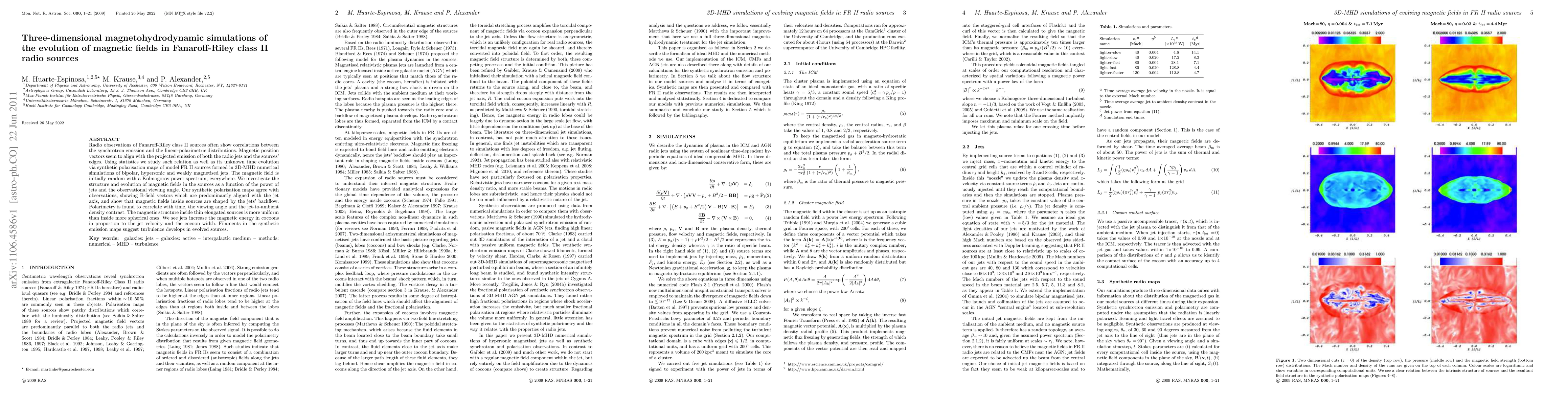 This paper uses 3D magnetohydrodynamic simulations to study the evolution of magnetic fields in Fanaroff-Riley class II radio sources, finding that magnetic fields align with radio jets and source edges, and that jet power and viewing angle influence magnetic structure and polarization. The simulations show that magnetic fields are shaped by jet backflow and that turbulence develops in evolved sources.